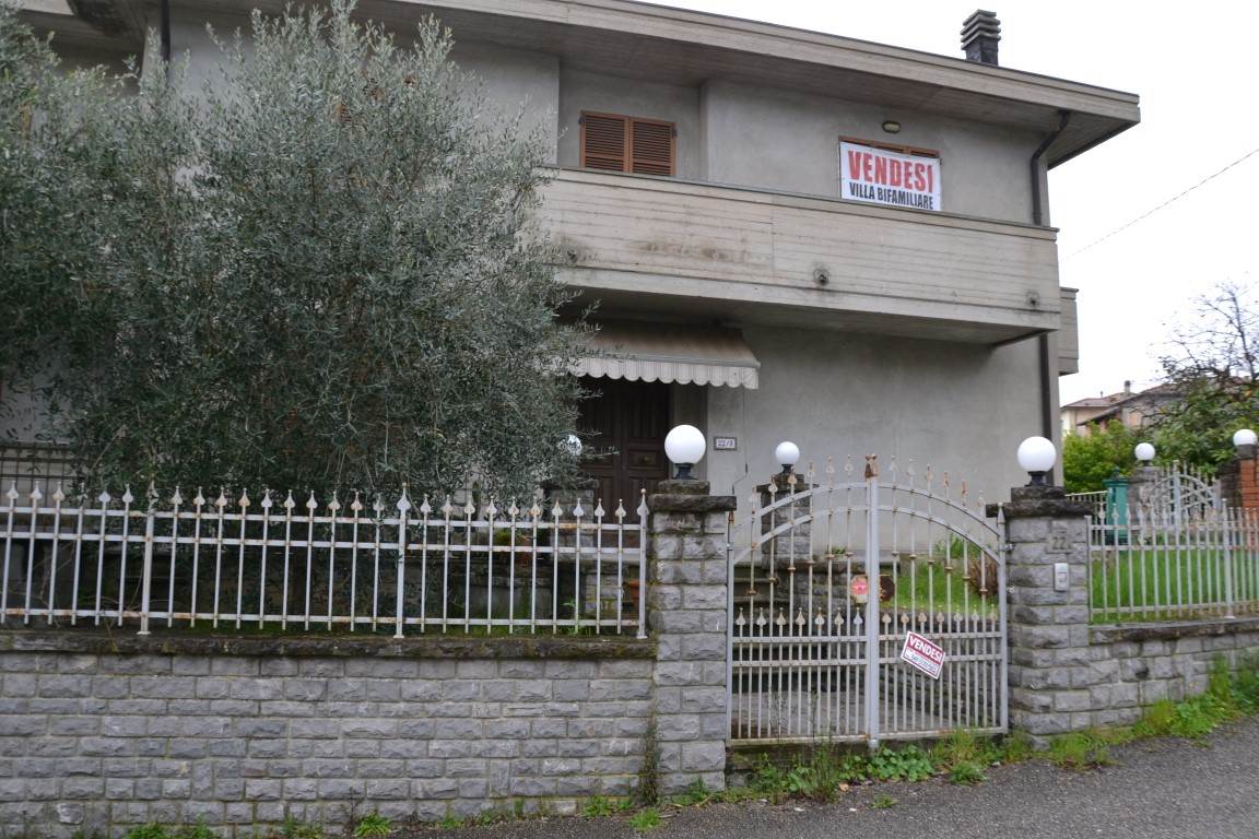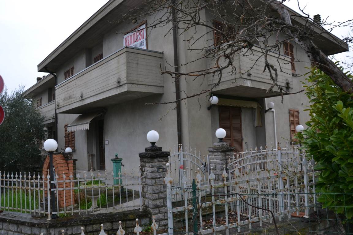 Lucignano (AR) in zona molto panoramica e vicino al centro storico vendesi villa bifamiliare, di cui una terminata e completa di arredamento, l'altra internamente allo stato grezzo, esternamente ultimata, con la possibilità di suddividerla in due appartamenti e ampi garage al Piano s.to; la parte ultimata è composta al P.T. da ingresso, soggiorno, tinello, cucinotto, due camere, bagno due terrazze e ripostiglio; primo piano che si raggiunge da scala interna si trovano due camere, altro soggiorno, studio e due bagni; al pian s,to collegato sempre da scala interna si trova la cantina, la centrale termica e un ampio garage. Il prezzo richiesto è trattabile.