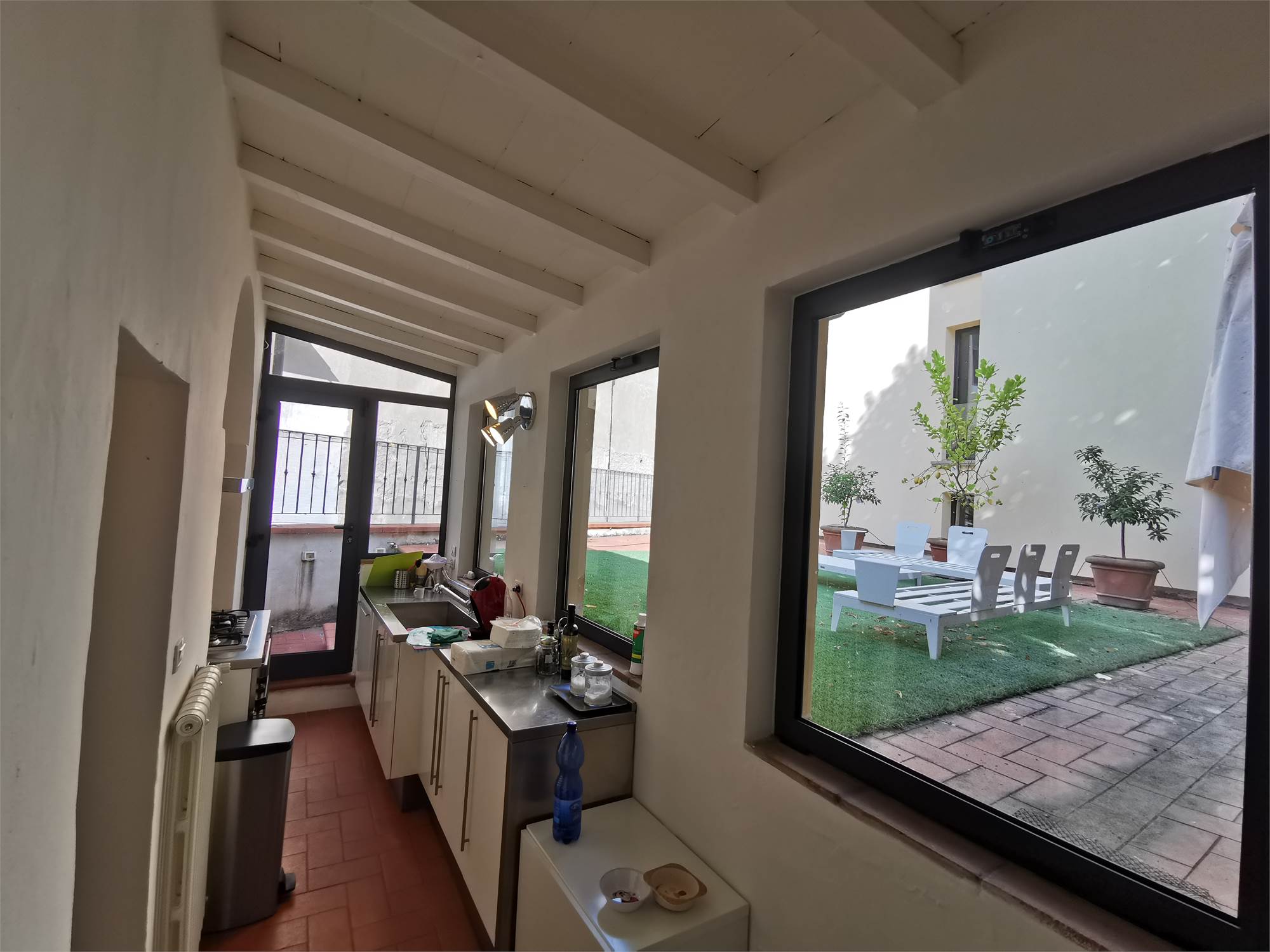 Arezzo, centro storico, pressi Corso Italia, vendesi splendido appartamento/ terratetto indipendente, con scalinata di ingresso a p1, soggiorno, cucina, sala da pranzo e ampio terrazzo abitabile di 80 mq, splendida vista sul centro storico, bagno, camera matrimoniale e piccola cameretta o studio/ stanza armadi. L'appartamento è ristrutturato con ottimi materiali tipici, ma allo stesso tempo moderni, con ambienti affascinanti. No condominio. IMMOBILE UNICO!!!