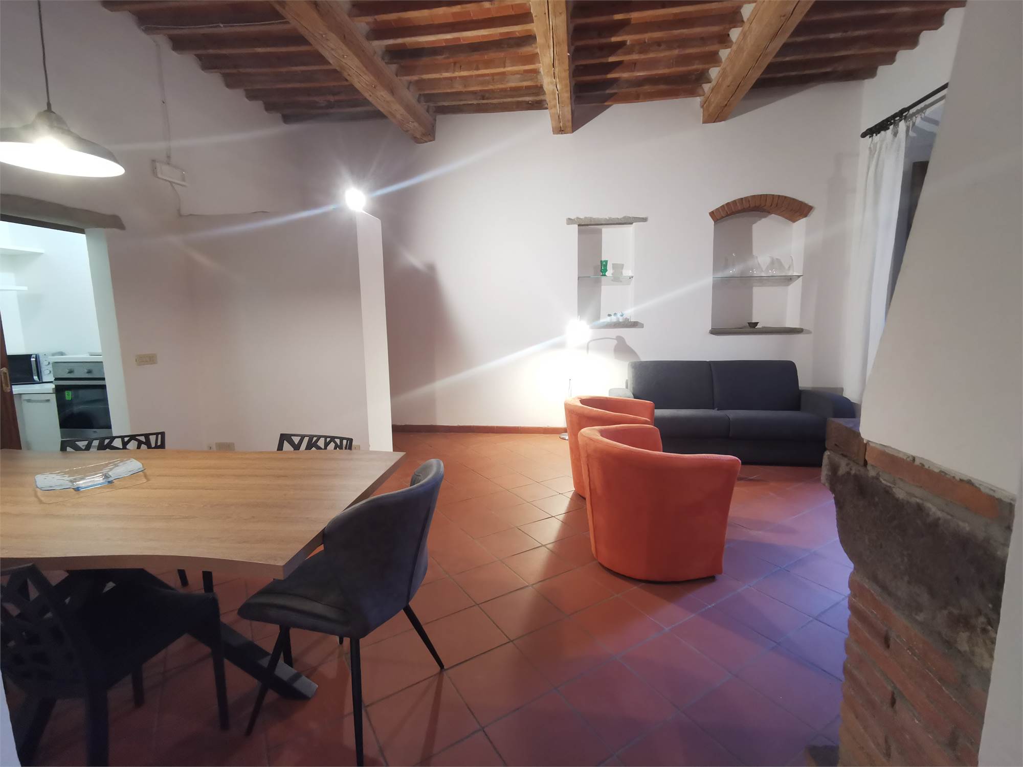CONTRATTO A PARTIRE DAL 30 OTTOBRE. Affittasi in centro storico, in zona facilmente raggiungibile, bell'appartamento praticamente nuovo, al piano secondo di condominio, composto da ingresso, soggiorno con camino in pietra e sala da pranzo, cucinotto separato, ampio bagno finestrato, camera matrimoniale, al piano sottotetto, ampio ripostiglio e armadio a muro. Solo persone referenziate, con garanzie DIMOSTRABILI. Completamente arredato a nuovo. Spese condominio 30 euro al mese, internet e utenze a parte. Contratto 3anni+2 canone concordato.